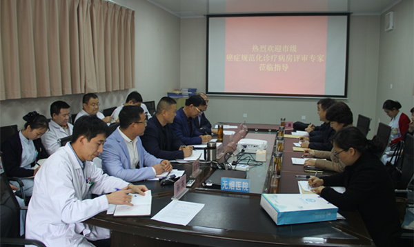 11月29日,市卫计委专家组王军业一行到我院进行癌症规范化诊疗示范病房现场评审。我院院长孙新蕾、副院长袁明各、医务科科长刘金涛及相关科室负责人参加汇报。